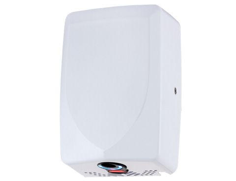 Secamanos blanco con carcasa de ABS blanco, certificado ADA. Diseño compacto. Con luz led azul de guía para el usuario, alta velocidad y rápido secado. Potencia motor 600W / Potencia resistencia 400W.